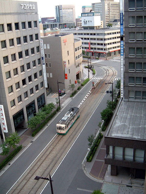 市内には路面電車も健在です。駅前付近を行く7000型