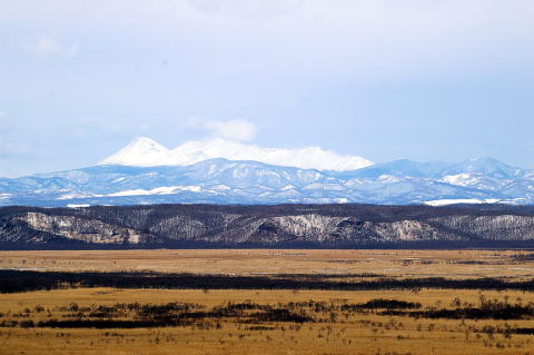 ついでに寄った細岡展望台、強風のせいか雌阿寒がよく見えた。