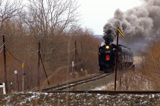 前向きなんだから〜、ってリキ入れたら細岡の踏切で追いつきました。バックは 06.3.19 塘路→細岡