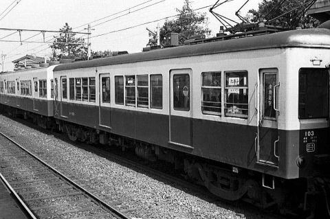| 新京成の100形は全車(25両)が京成からの移籍です。この100形は 1926年(大正15年)の成田開通にそなえて製作した、雨宮製作所製の シングルルーフ、16m車で正面5枚窓の1M車でした。 戦後更新が行われましたが、更新期間が1953〜62年と長期だった為、 1台1台に特徴がありました。残念ながら全車の記録がありませんが、 1972〜75年に撮影した中から形態別に分類してみました。 |