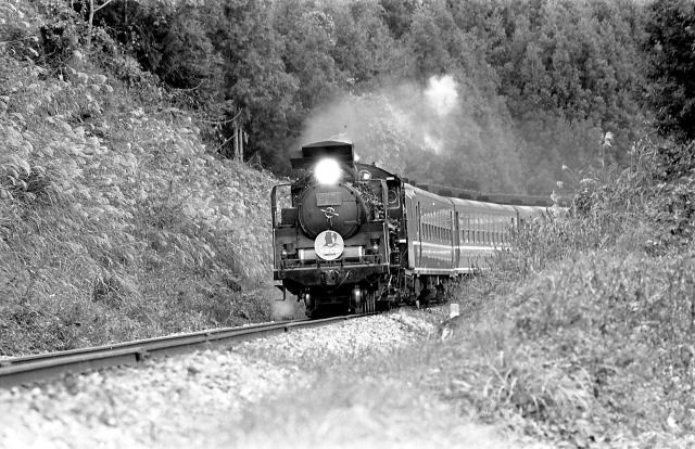 | 山口線にC571のやまぐち号が走り出して、今年で25周年になるそうです。 運行開始した年の秋、なぜだかカモ団員と「行ってみよう」と話がまとまり、 雨の中のやまぐち号を追っかけてきました。 今回もそうですが、どうやら私は山口に行くと雨にたたられるようで。 当時二人とも新婚ホヤホヤでしたので奥方連れと相成りましたが、 山口市内で二人を置き去り、3年ぶりの蒸気撮影を堪能しました。 しかしその後の鉄活動は続かず、C62ニセコが無くなる直前まで休鉄状態が 続くのですが・・・ 撮影:1979.11.17〜18 |
